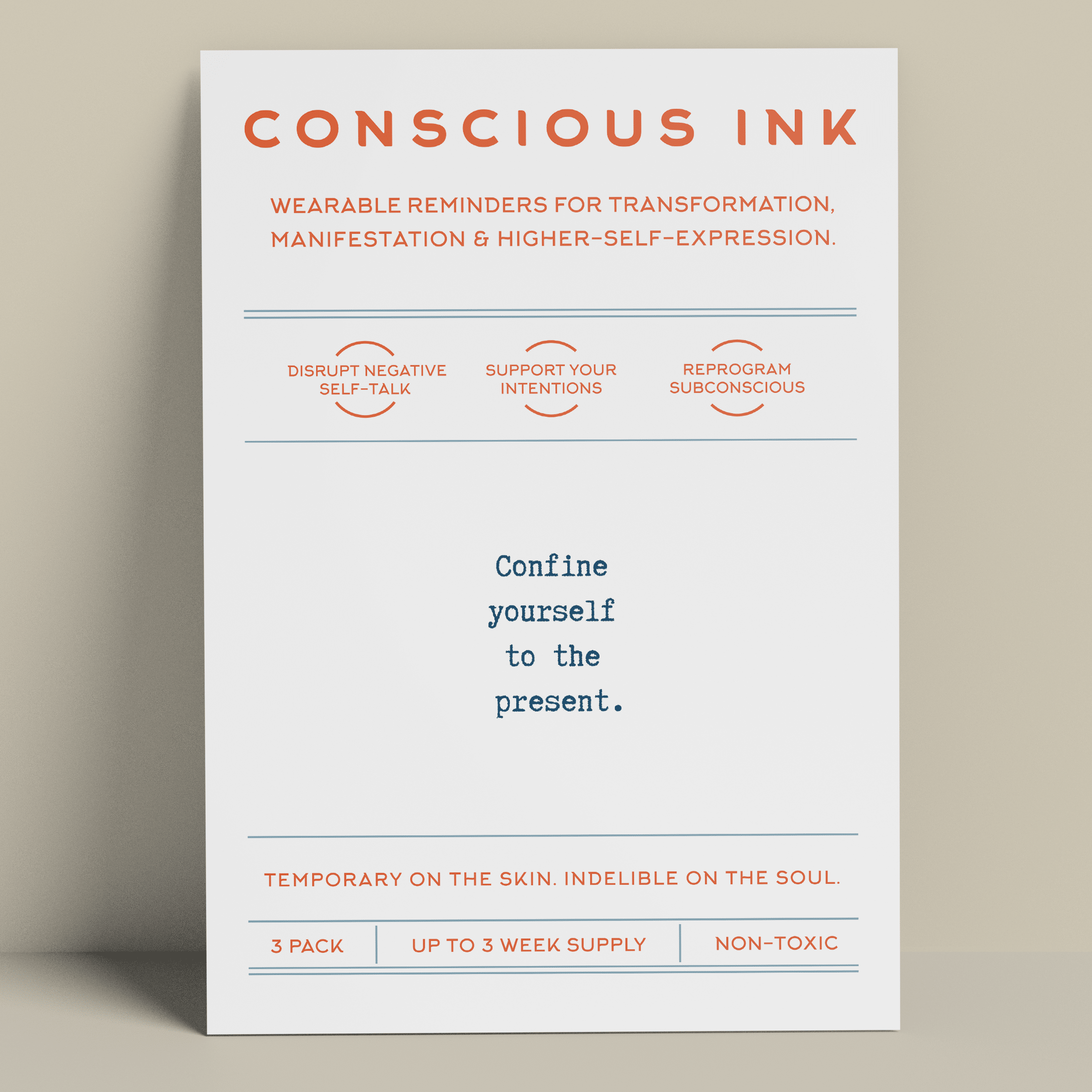 Inspired by the timeless wisdom of Marcus Aurelius, this Manifestation Tattoo is a grounding reminder to return to the only moment that truly exists—now. When your mind drifts to the past or races toward the future, let these words gently call you back to presence, peace, and power. Freedom begins where the present begins. Confine yourself to the present - Marcus Aurelius Temporary Tattoo size 2"x1.5"