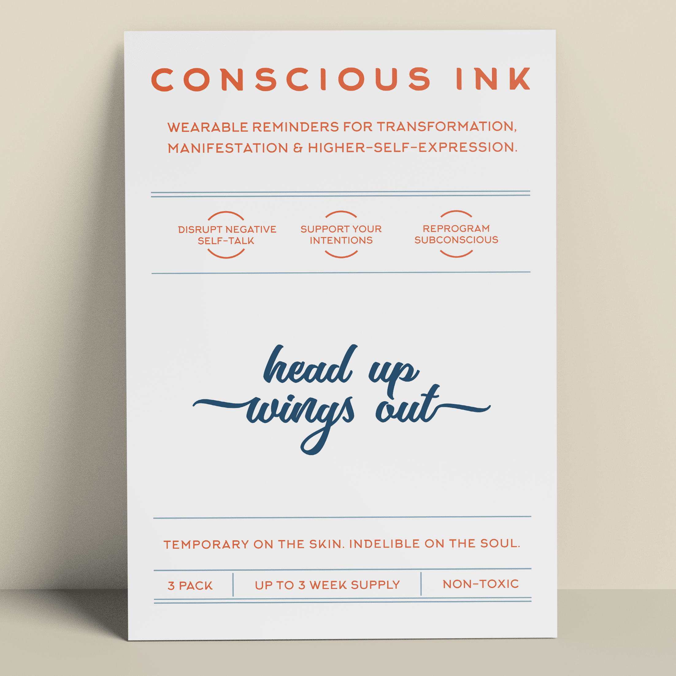 This is no ordinary, lonely sweatshirt. Each comes with a matching Conscious Ink "Head Up Wings Out" 3-Pack included (a $10/value). It's a unique "2-in-1" empowering Manifestation Kit!