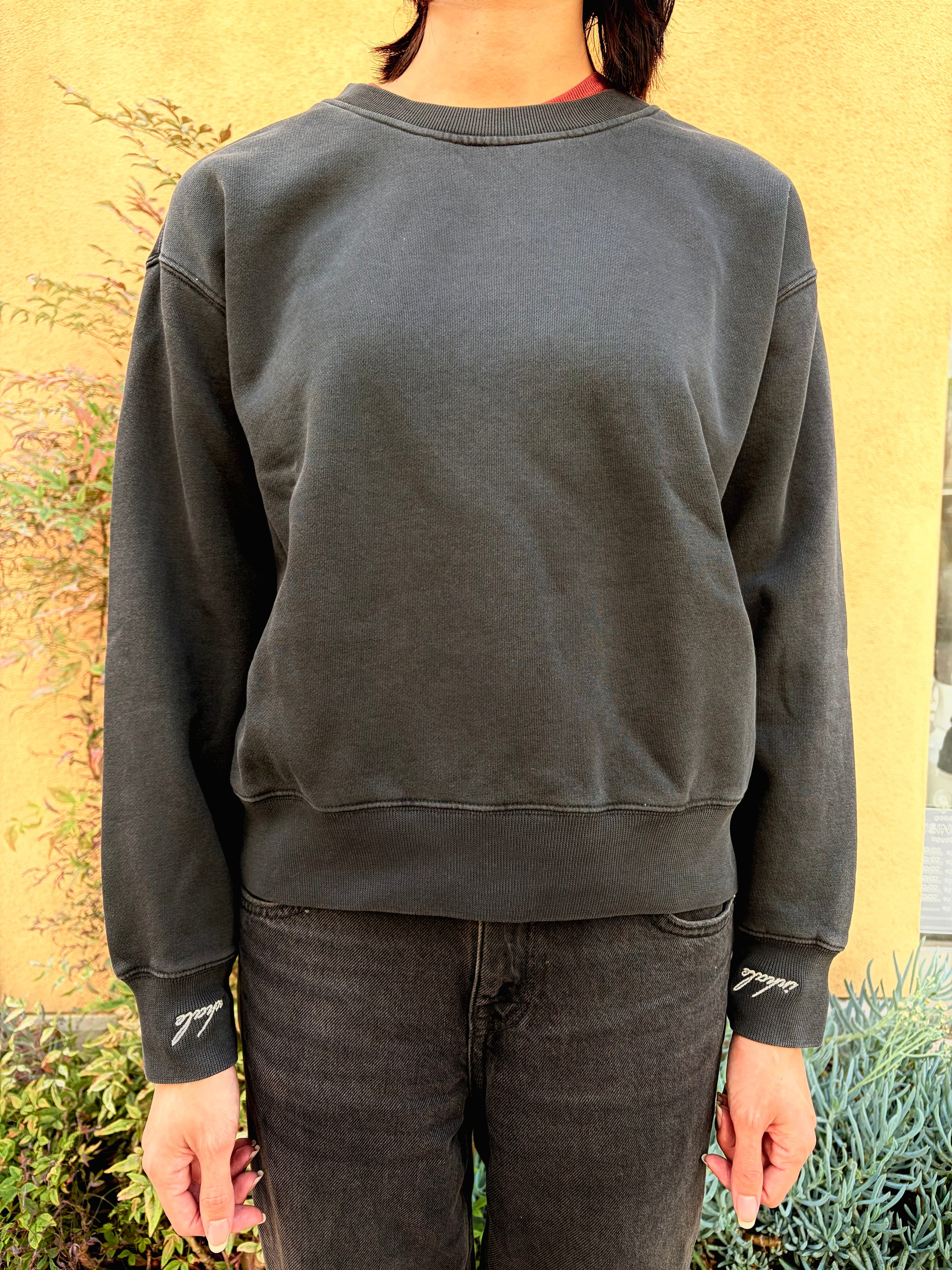 This faded crew is ready to work for you, reminding to breathe throughout the day, with its elegantly embroidered cuffs that read "inhale" and "exhale". Relaxed, oversized fit with dropped shoulders, pullover crew, anti-pill fleece, soft and cozy. This inspirational sweatshirt is here to help you remember to be balanced, to inhale...and to exhale.