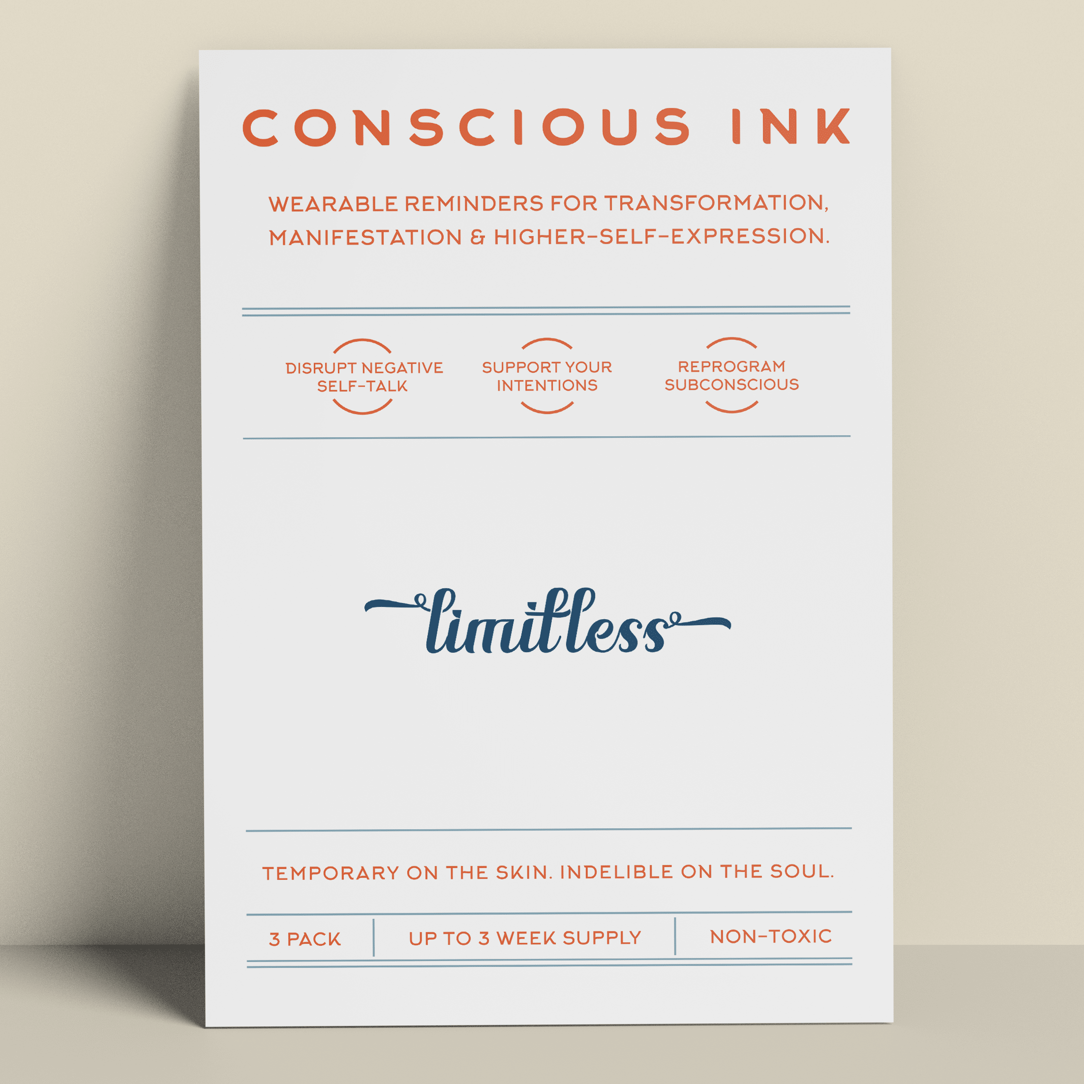 - Each Conscious Ink lasts 3-7 days on average (based on proper application, placement area, skin type & activity level).