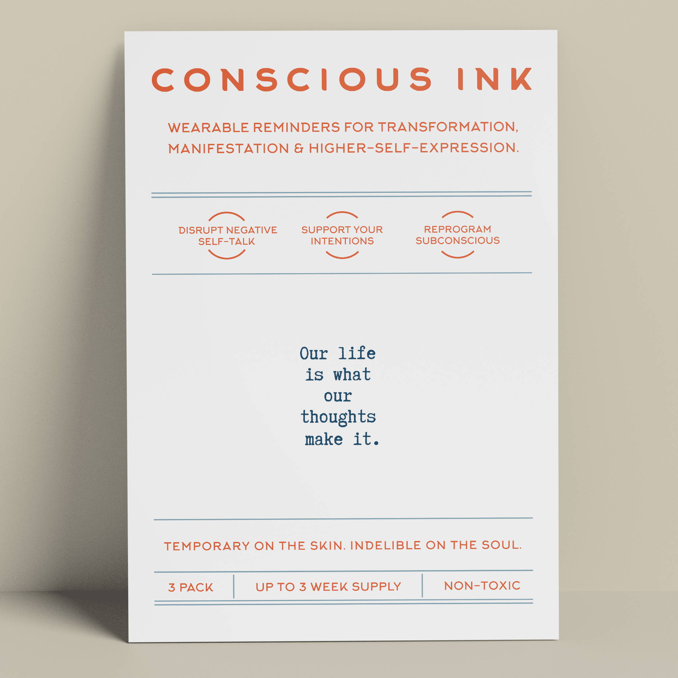 - Each Conscious Ink lasts 3-7 days on average (based on proper application, placement area, skin type & activity level).