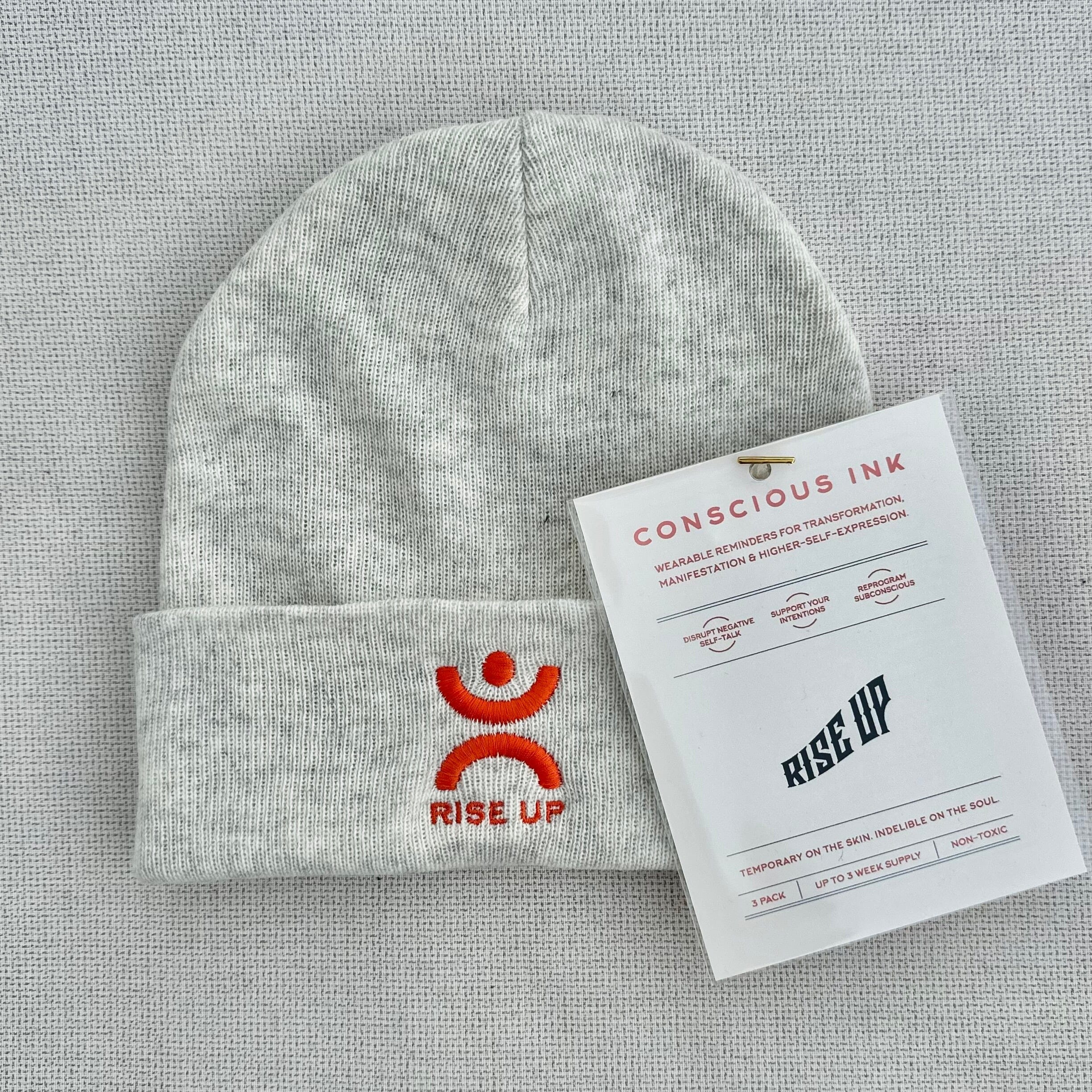 Raise your energy in style. This Manifestation Beanie will remind you to..."Rise Up" to face any occasion. 😁 Each beanie comes with a matching "Rise Up" 3-Pack included ($10 value).
